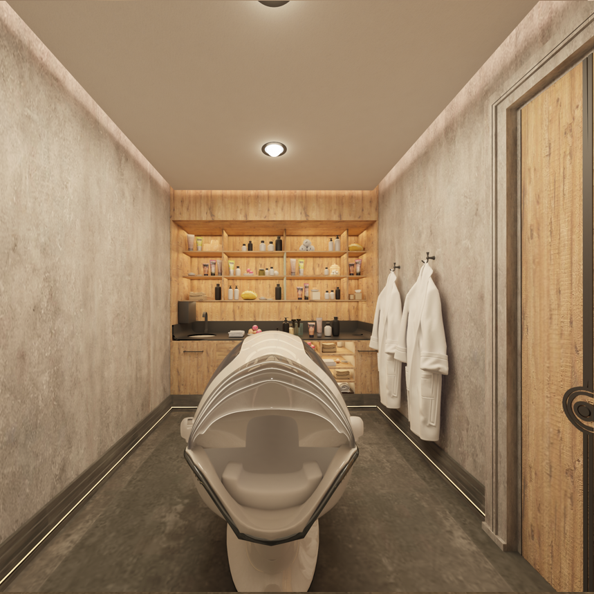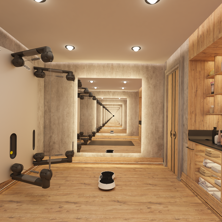 A TenX engineered exercise room, with gravity plate and vacuum equipment.
