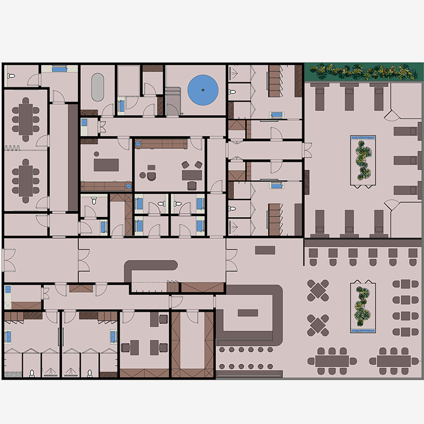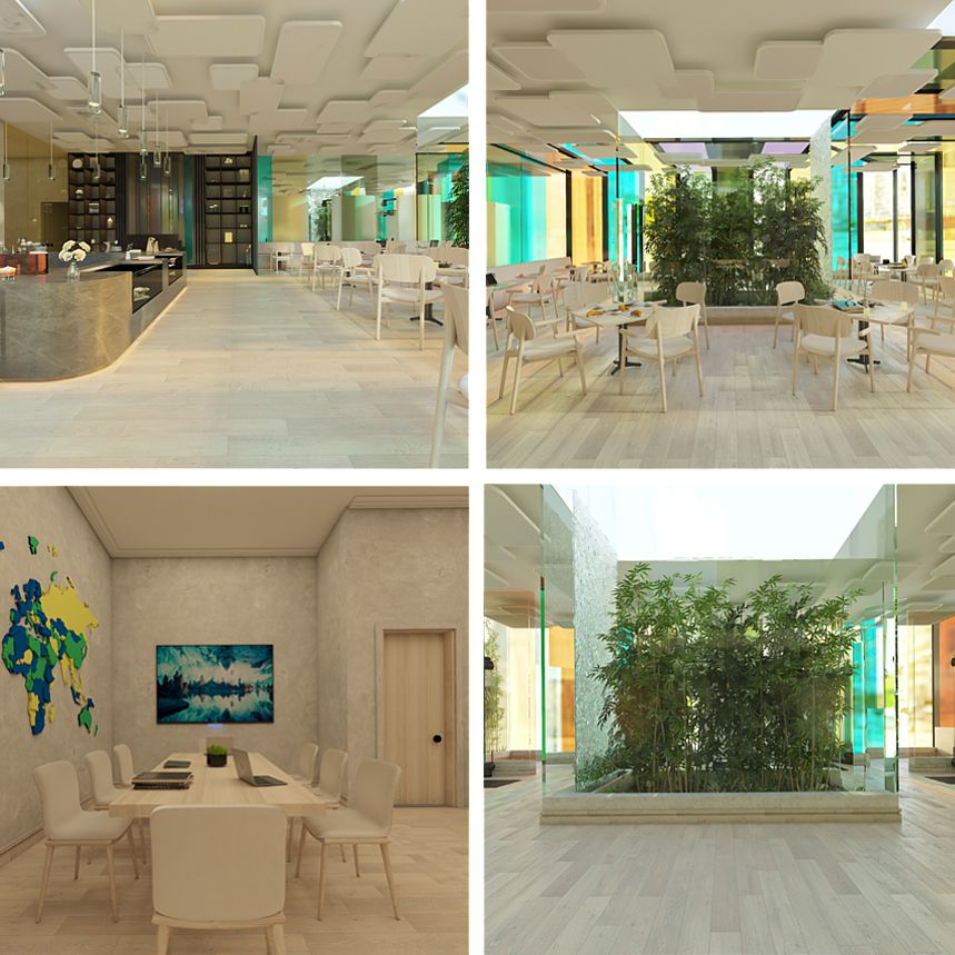Co working space with a Prasada,“ farm to table“ organic food and beverage outlet, a la carte and buffet.